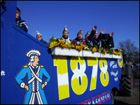 Unser neuer Gesellschaftswagen wurde von Vielen bestaunt. Da ist dem Wagenbauer Florian Noever ein Meisterstück gelungen! Die Idee mit den 78-er Mützen kam aber von uns. Auch der zweite Festwagen mit unseren Emblemen und dem Riesen-Po kam gut an und war auch auf der Titelseite der WZ.