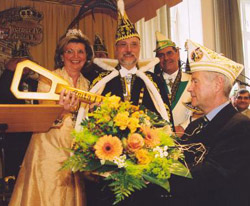Der Schüssel zum Frohsinn überreicht vom Oberbürgermeister der Stadt Krefeld Dieter Pützhofen an das neue Karnevalistische Herrscherpaar.